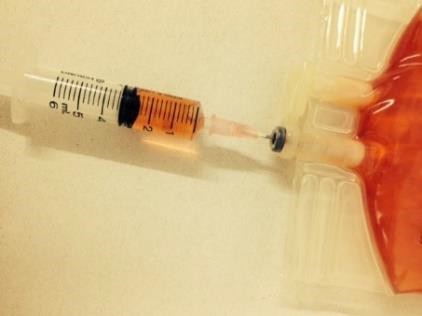 1. Using a 5ml syringe and an 18g x 1.5’’ needle, remove approximately 2.5ml from the diluent bag.
