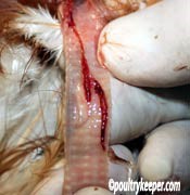 Post mortem ‐ PMs are rarely useful for giving a specific diagnosis except for gape worm where red worms are found in the trachea (see photo above). Lesions may include: