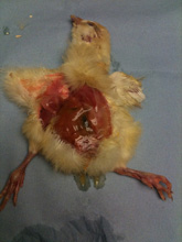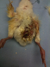 These chicks usually have a smell similar to rotten eggs and tend to be hunched up or depressed and quiet. Sadly most of them die within the first five days of life. Even if they do survive they are commonly stunted.